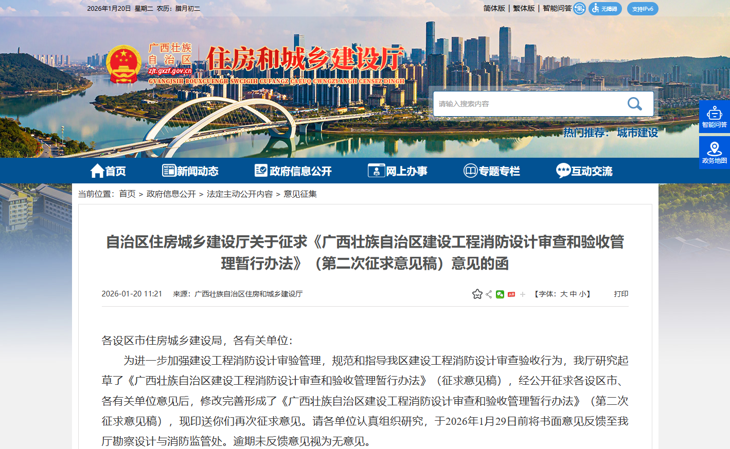 自治区住房城乡建设厅关于征求《广西壮族自治区建设工程消防设计审查和验收管理暂行办法》(第二次征求意见稿)意见的函
